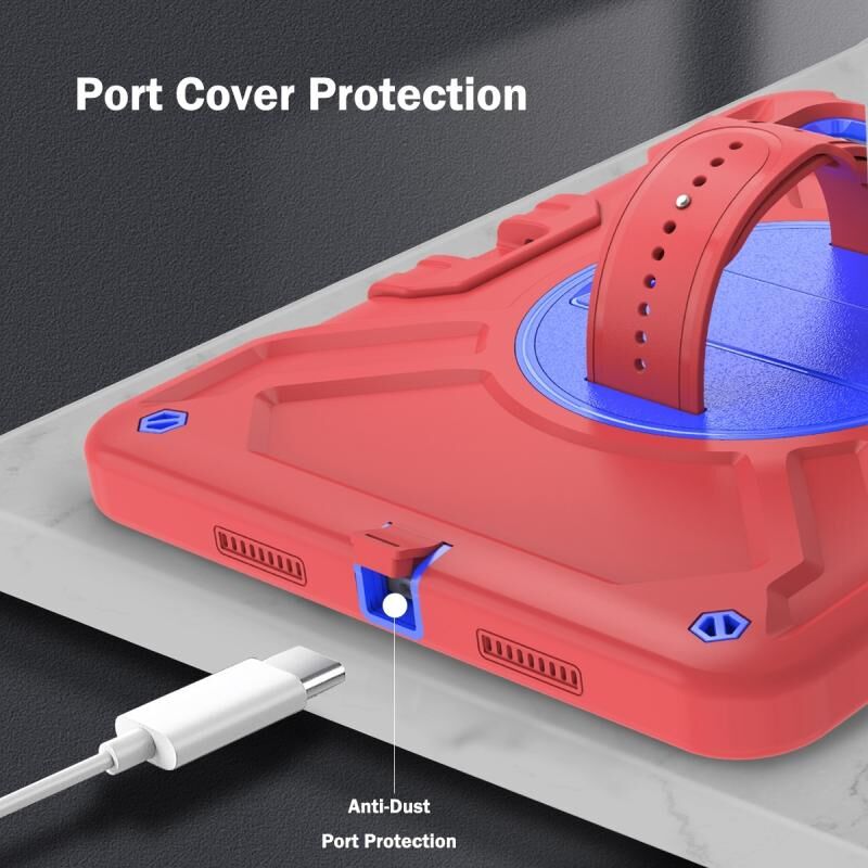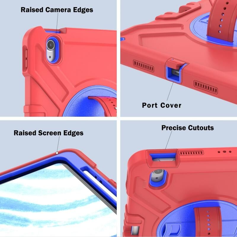 Θήκη tablet υβριδική σιλικόνης για iPad Air 11 2025 / 2024 με περιστροφή X και λουρί (Κόκκινο Μπλε)