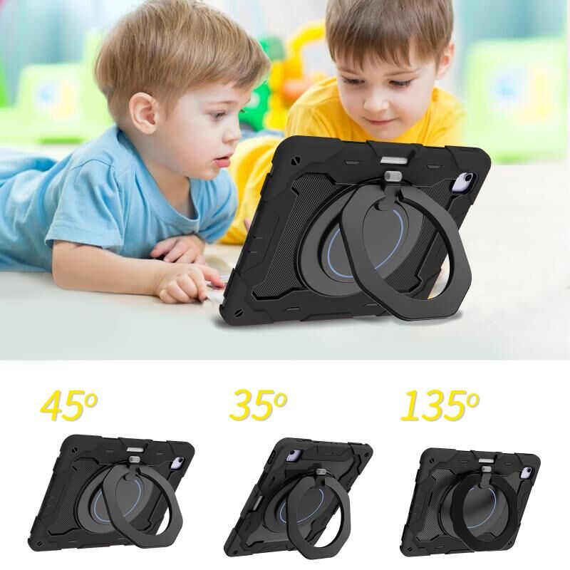 For iPad Air 13 2024 / 2025 Armor Portable Rotating Ring Holder Silicone Tablet Case with Pen Slot(Black)