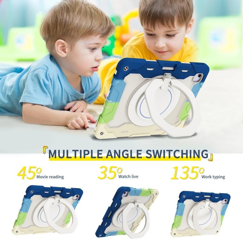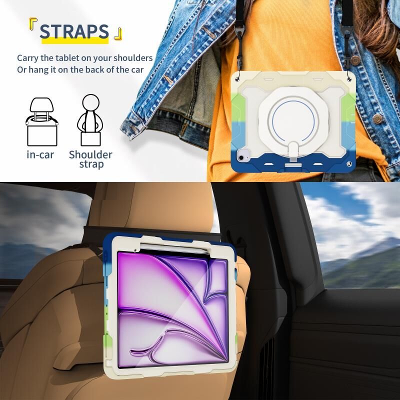 For iPad Air 13 2024 / 2025 Armor Portable Rotating Ring Holder Silicone Tablet Case with Pen Slot(Colorful Blue)