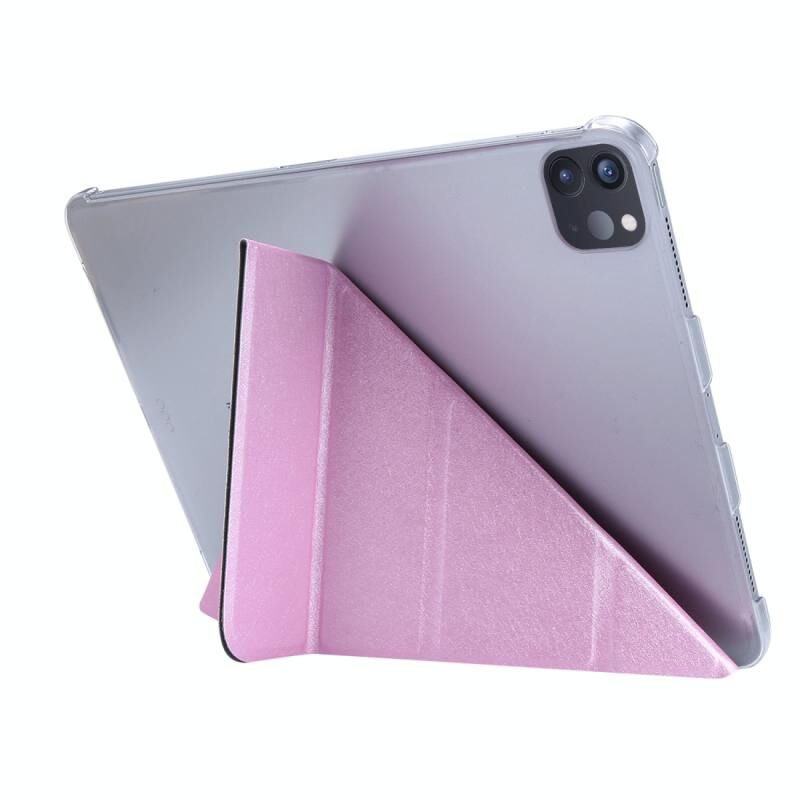 For iPad Air 13 2024 / 2025 / Pro 12.9 2020 Silk Texture Horizontal Deformation Flip Leather Tablet Case with Three-folding Holder(Pink)