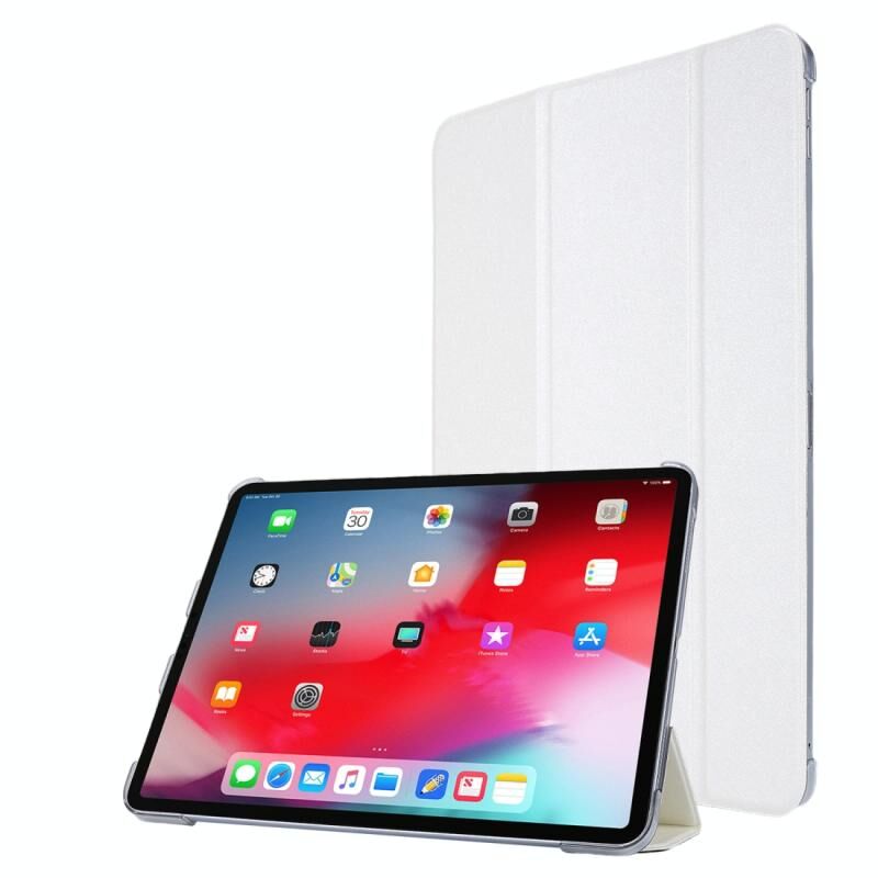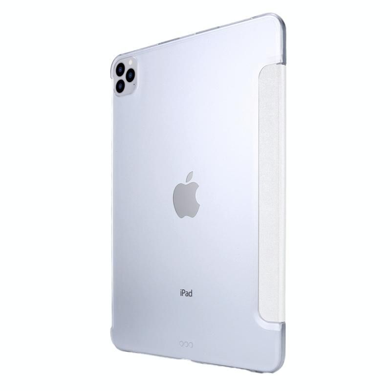 For iPad Air 13 2024 / 2025 / Pro 12.9 2020 TPU Silk Texture Three-fold Horizontal Flip Leather Tablet Case with Holder(White)