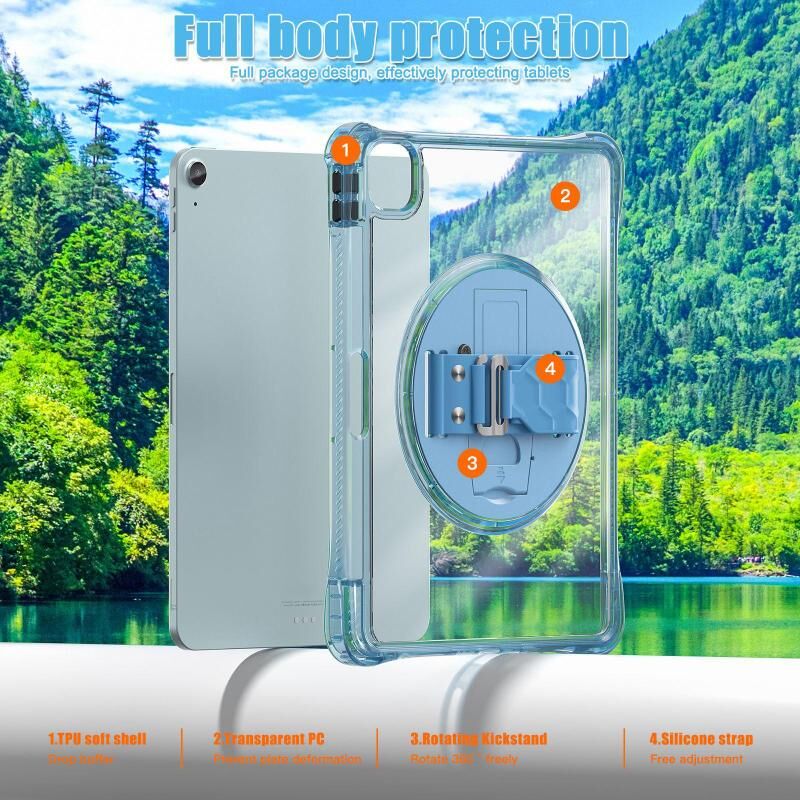 For iPad Air 13 2024 / 2025 Rotation Grip Holder TPU Hybrid Clear PC Tablet Case(Light Blue)