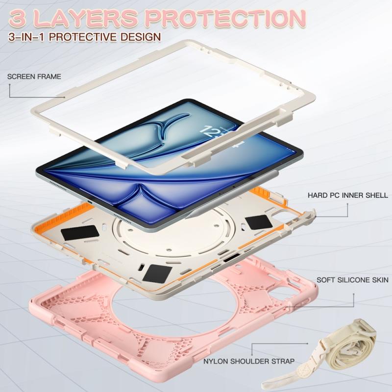 For iPad Air 13 2024 / Air 13 2025 Silicone Hybrid PC Tablet Case with Holder & Shoulder Strap(Cherry Blossom Pink)