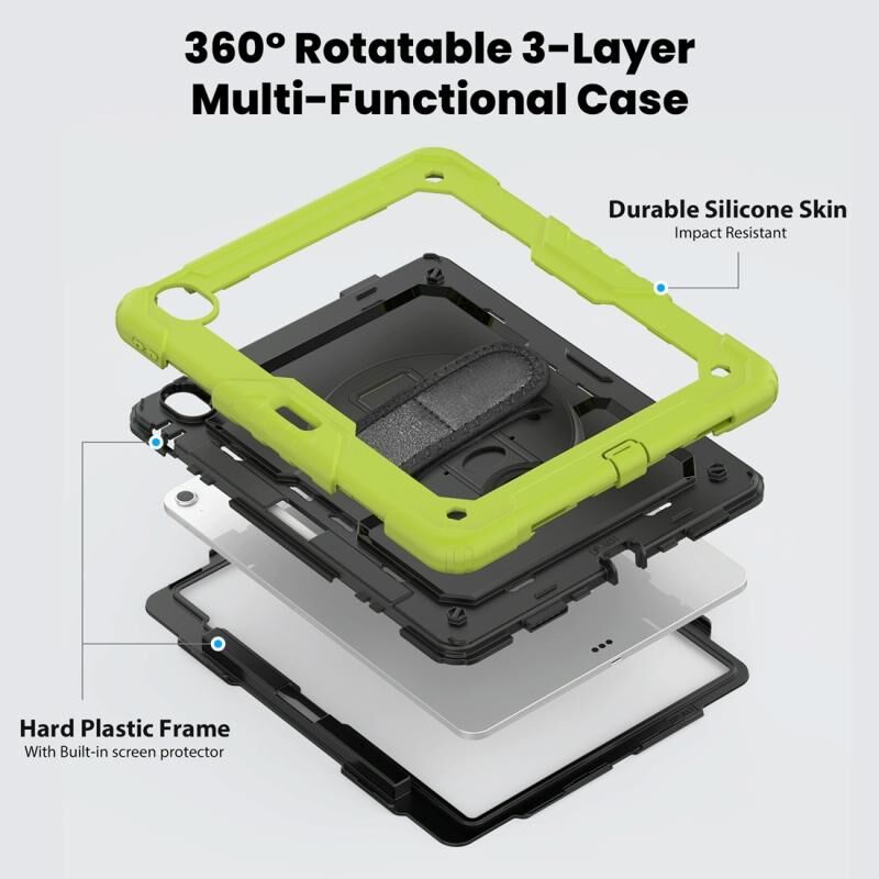Για iPad Air 13 2024 / Air 13 2025 σιλικόνης υβριδικό PC Tablet Προστατευτική θήκη (μαύρο + κίτρινο πράσινο)