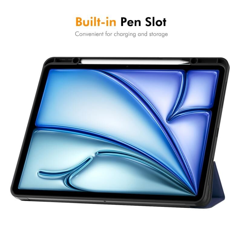 For iPad Air 13 2024 ENKAY Tri-fold Custer Texture TPU Leather Smart Tablet Case with Pen Slot(Grey) (ENKAY)