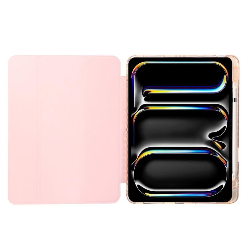 For iPad Air 13 2025 / 2024 Clear Acrylic 3-Fold Leather Tablet Case(Dark Green)