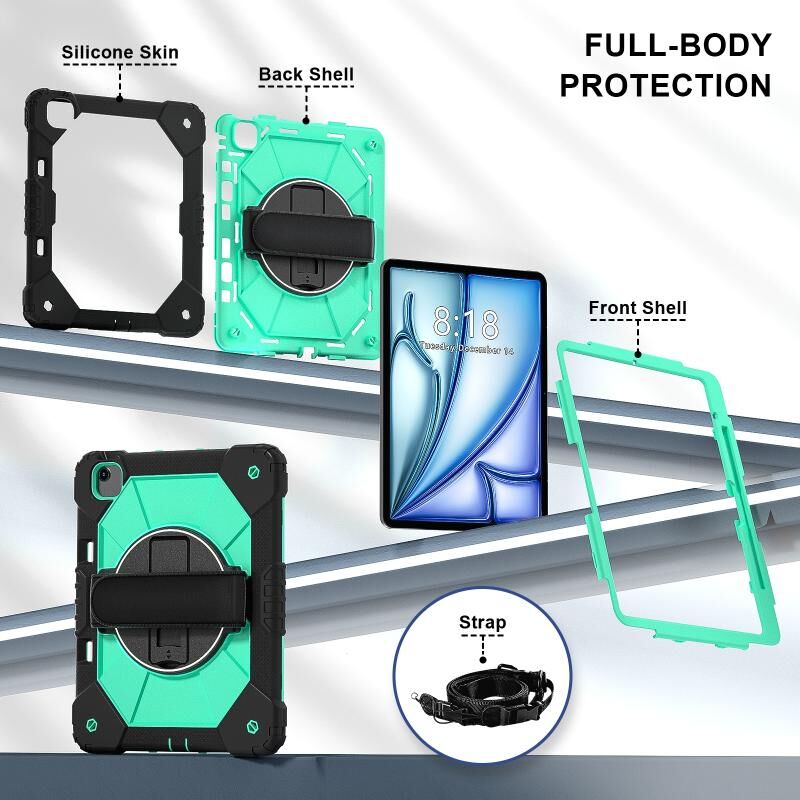 For iPad Air 13 2025 / 2024 Contrast Color Robot Silicone Hybrid PC Tablet Case(Black Mint Green)