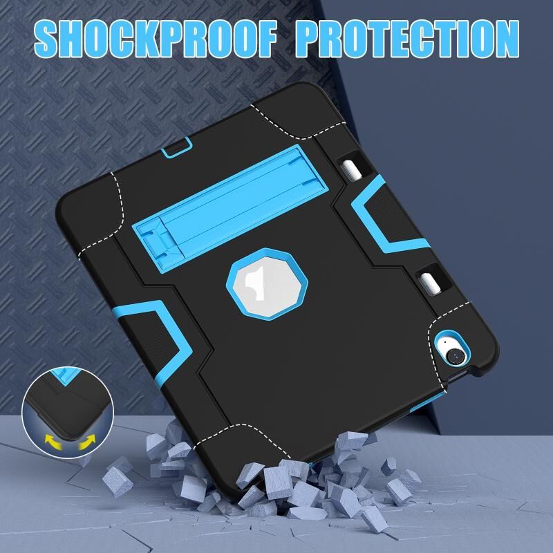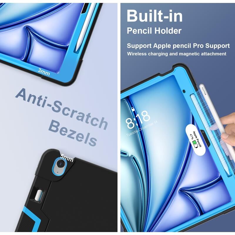 For iPad Air 13 2025 / 2024 Contrast Color Silicone Acrylic PC Tablet Case with Holder(Black Blue)