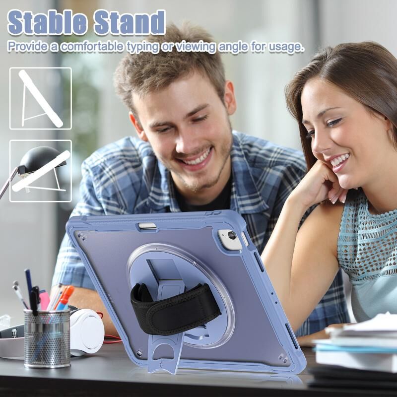 For iPad Air 13 2025 / 2024 Heavy Duty Hybrid Tablet Case with Hand Grip & Strap(Lavender Grey)