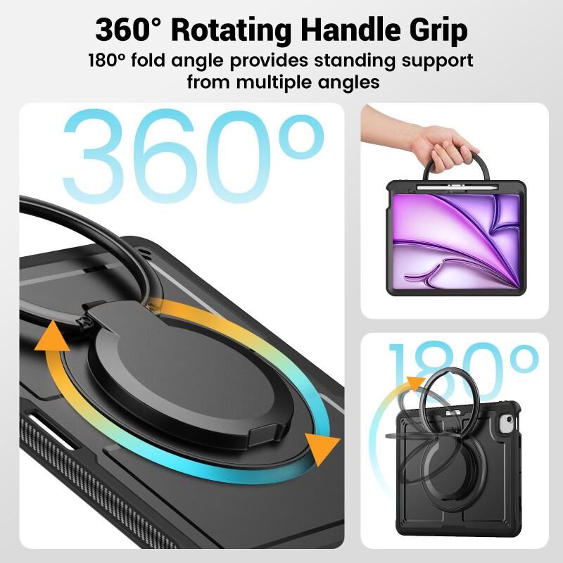 For iPad Air 13 2025 / 2024 Honeycomb Hybrid Tablet Case with Handle Holder & Strap(Black)
