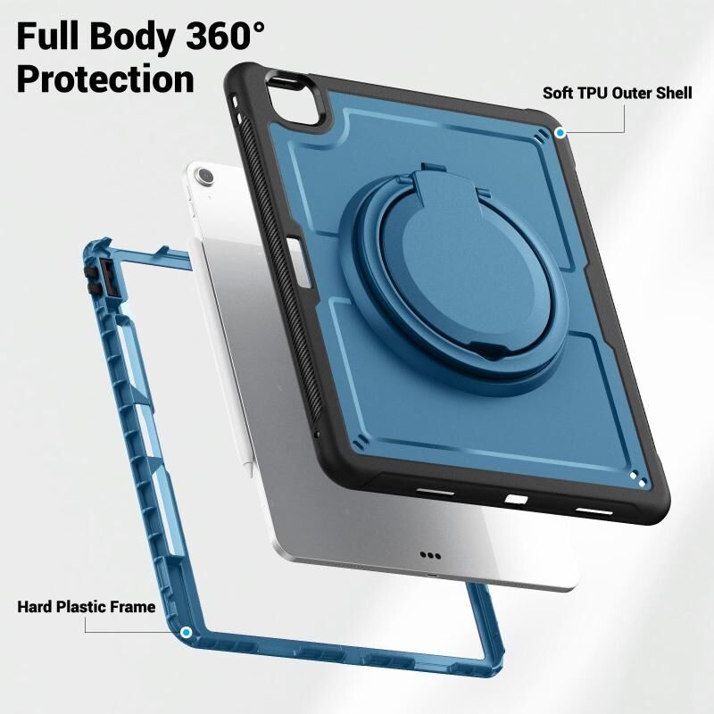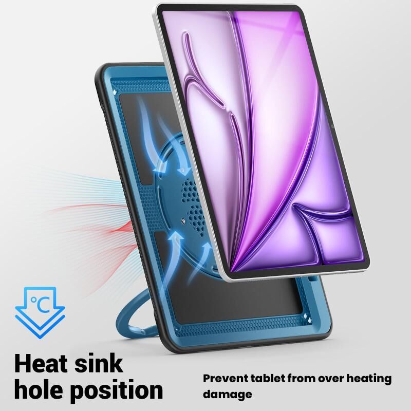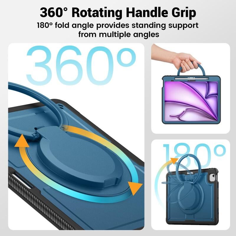 For iPad Air 13 2025 / 2024 Honeycomb Hybrid Tablet Case with Handle Holder & Strap(Navy Blue)