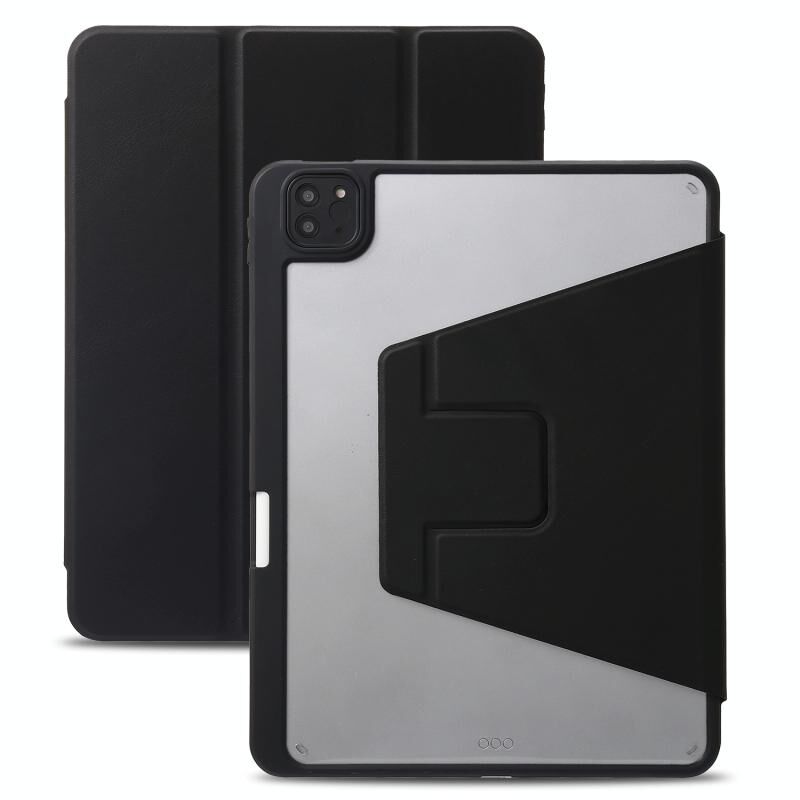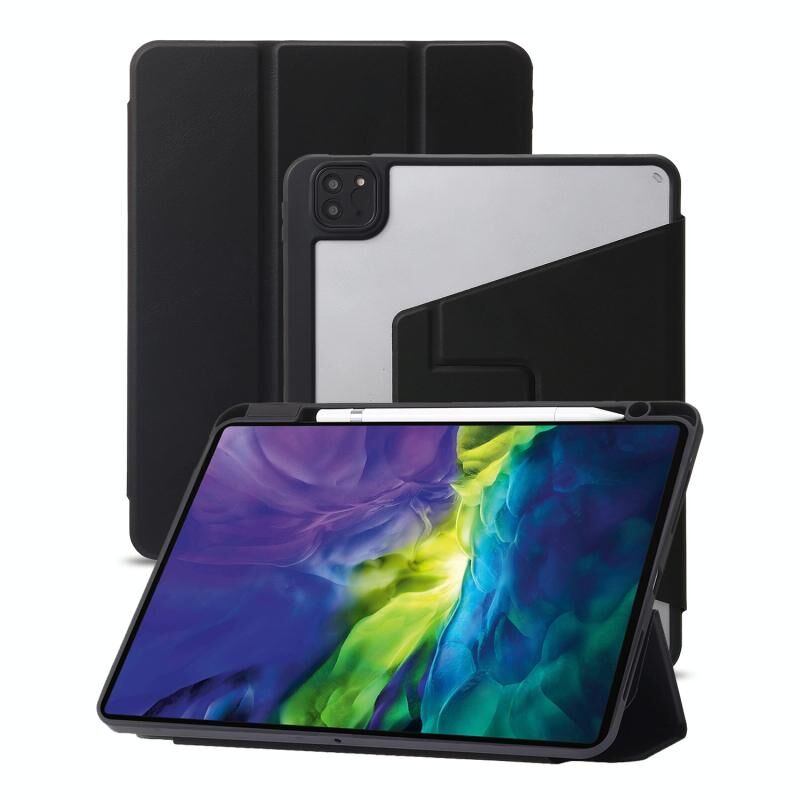 For iPad Air 13 2025 / 2024 / Pro 12.9 2022 3-Fold 360 Rotation Acrylic Leather Smart Tablet Case(Black)