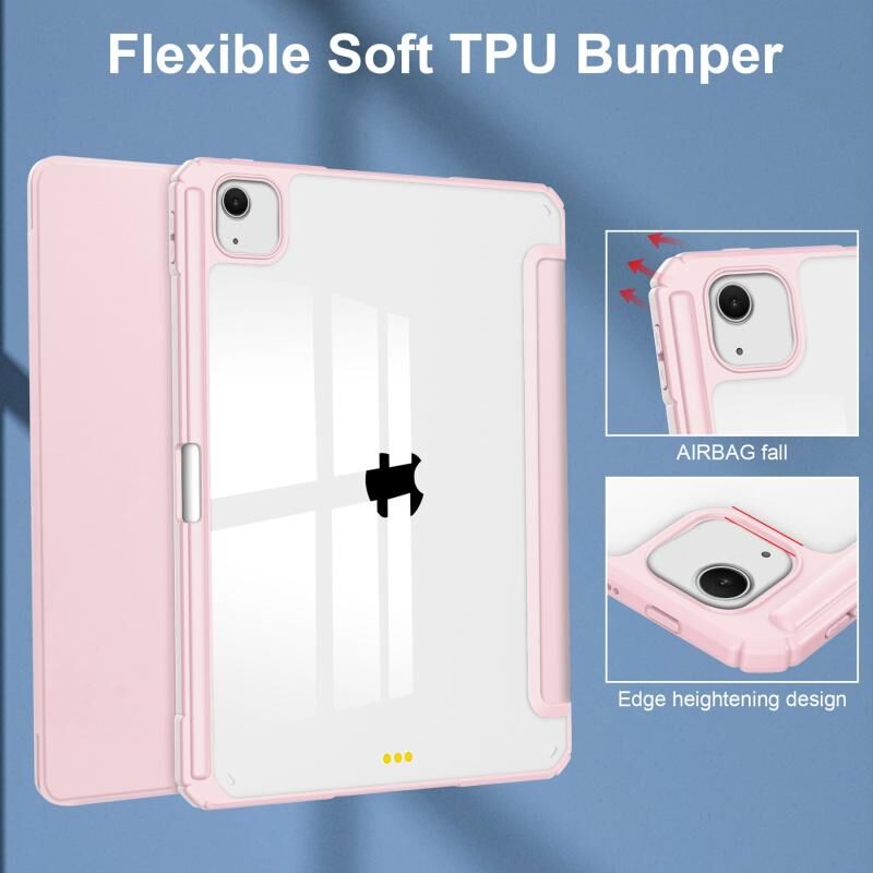 For iPad Air 13 2025 / 2024 Pure Color 3-fold Clear TPU Smart Leather Tablet Case(Pink)