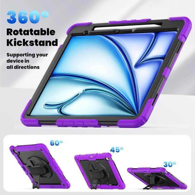 For iPad Air 13 2025 / 2024 Silicone Hybrid PC Tablet Case with Shoulder Strap(Purple)