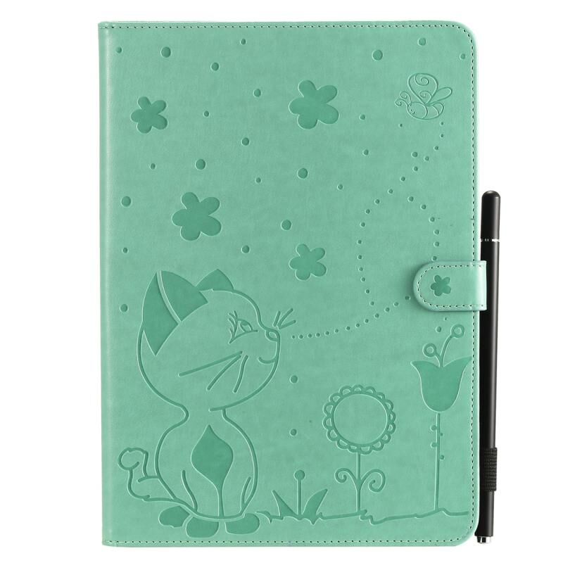 Θήκη δέρματος οριζόντιας αναδίπλωσης με ανάγλυφο σχέδιο γάτας για iPad Air 2 / Air / 9.7 (2018) & (2017) με βάση & υποδοχές καρτών & πορτοφόλι & υποδοχή στυλό & λειτουργία αφύπνισης / ύπνου (Πράσινο)