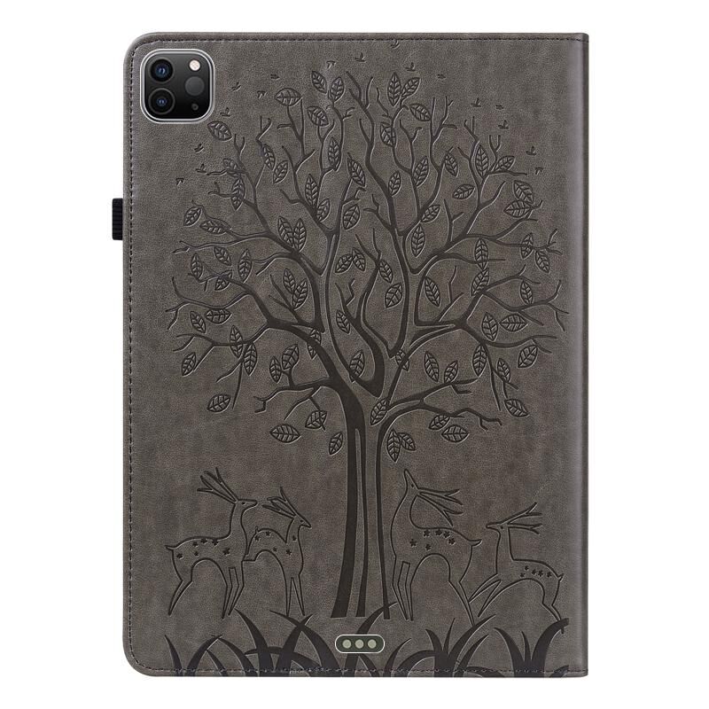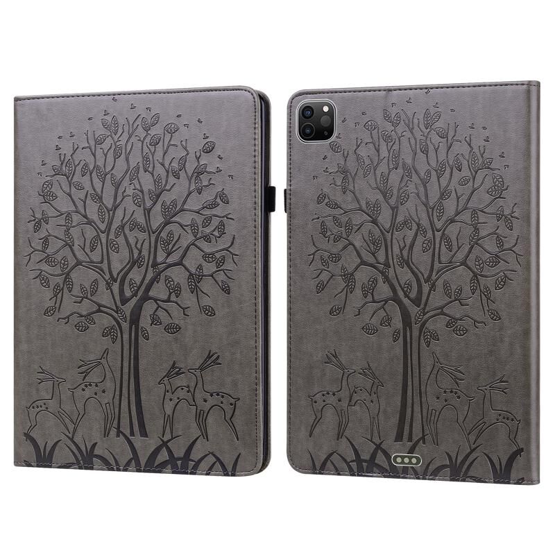 For iPad Air 2020 / Pro 11 2020 Tree & Deer Pattern Pressed Printing Horizontal Flip PU Leather Tablet Case with Holder & Card Slots & Sleep / Wake-up Function(Grey)