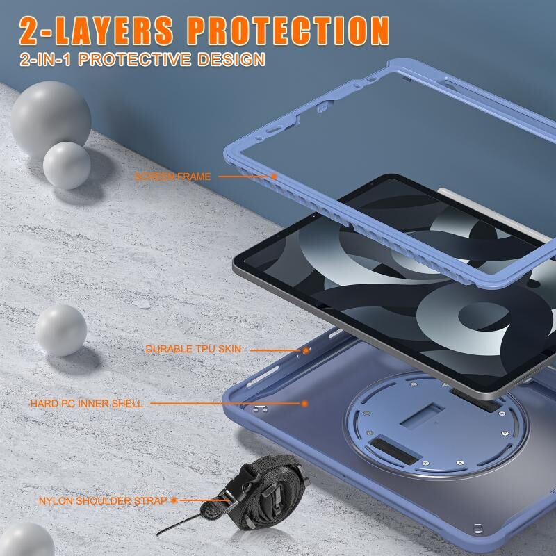 Θήκη Ταμπλέτας Υβριδική Βαρέως Τύπου για iPad Air 2022 10.9 / Pro 11 2022 με Λαβή Χεριού & Λουρί (Λεβάντα Γκρι)