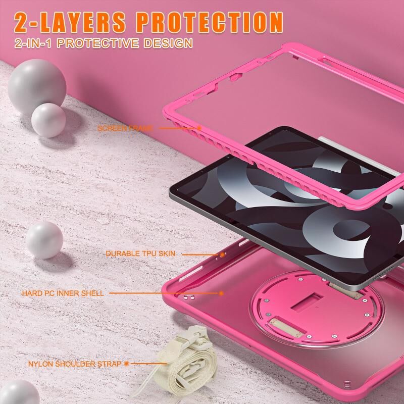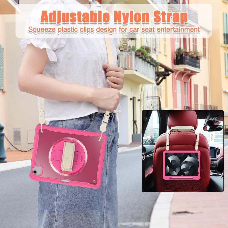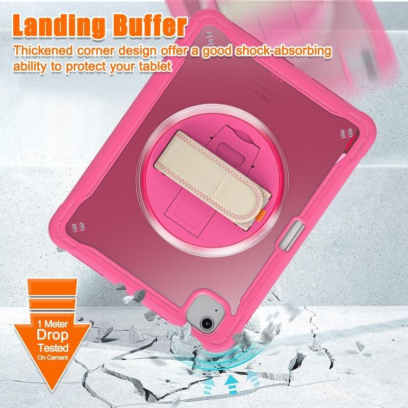 Θήκη Ταμπλέτας Υβριδική Βαρέως Τύπου για iPad Air 2022 10.9 / Pro 11 2022 με Λαβή Χεριού & Λουρί (Κόκκινο Ρόδι)