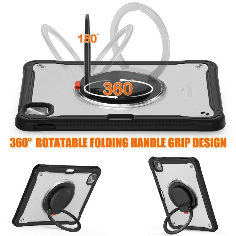 For iPad Air 2022 10.9 / Pro 11 2022 Heavy Duty Hybrid Tablet Case with Handle & Strap(Black)