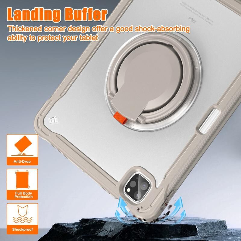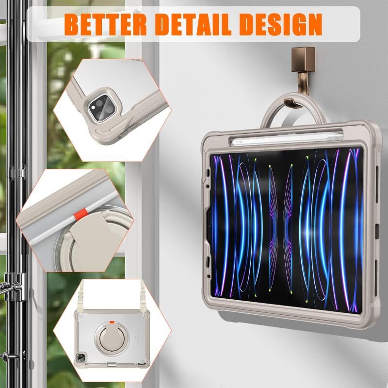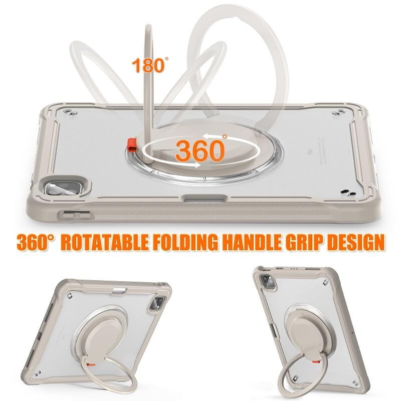 For iPad Air 2022 10.9 / Pro 11 2022 Heavy Duty Hybrid Tablet Case with Handle & Strap(Khaki)