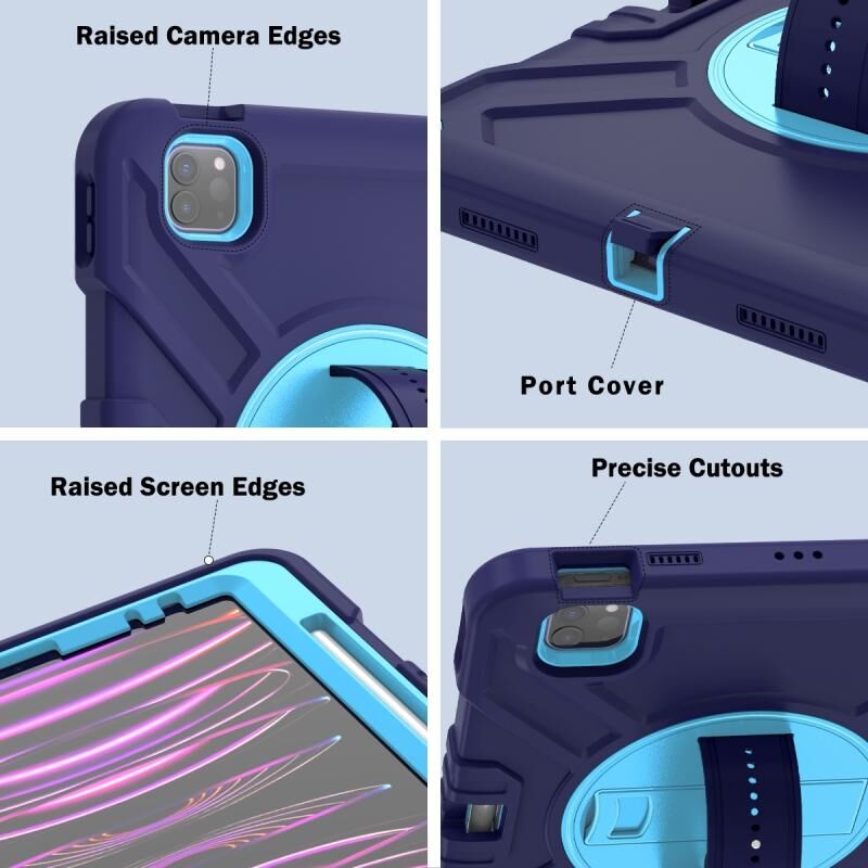 Θήκη tablet υβριδική σιλικόνης PC με λουρί για iPad Air 2022 10.9 / Pro 11 2022, περιστροφή X (Κόκκινο Μπλε)