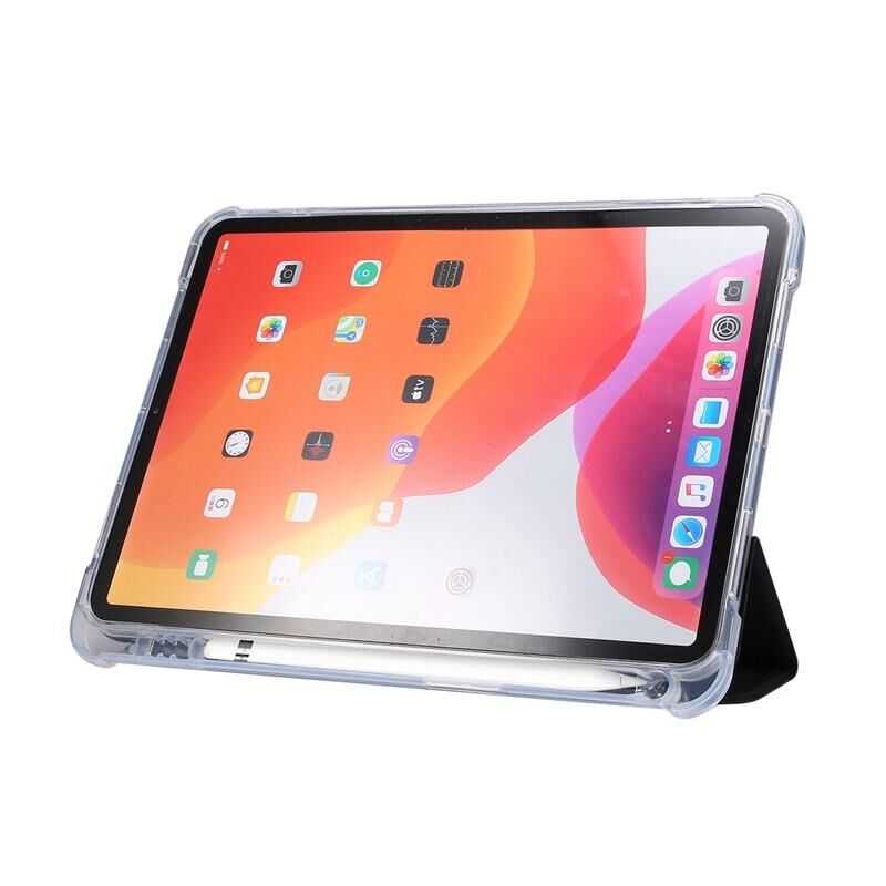 For iPad Air 2022 / 2020 10.9 3-folding Electric Pressed Skin Texture Smart Leather Tablet Case (Black)
