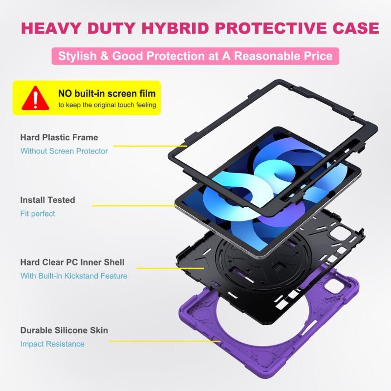 Θήκη προστασίας 360 μοιρών για iPad Air 2022 / 2020 10.9 από PC + σιλικόνη με βάση στήριξης & λουρί χειρός (Πορτοκαλί)