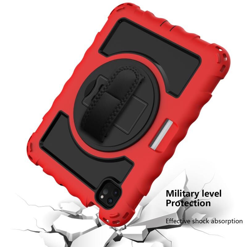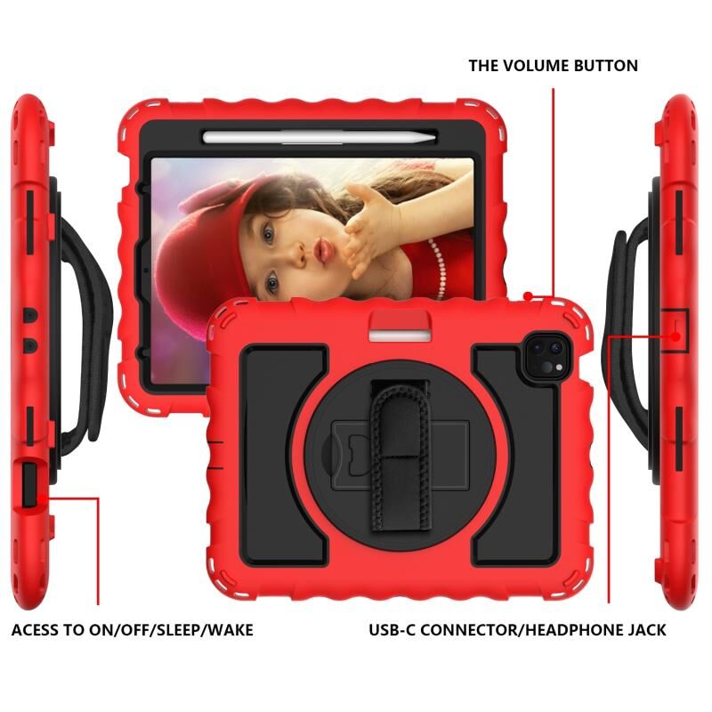 Για iPad Air 2022 / 2020 10.9 Περιστρεφόμενη θήκη 360 μοιρών από PC + Σιλικόνη, ανθεκτική σε κρούσεις, σε συνδυασμό με βάση στήριξης & λουρί χειρός & λουρί λαιμού & θήκη για στυλό (Πολύχρωμη + Φούξια)