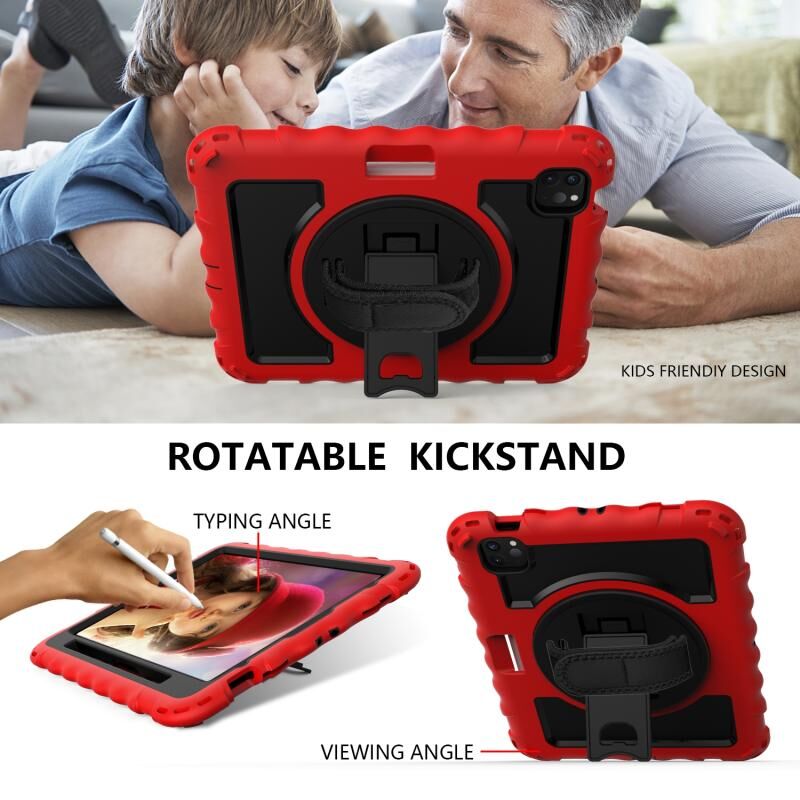 1. Βάση περιστροφής 360 μοιρών: Στην πλάτη της θήκης, υπάρχει ενσωματωμένος ιμάντας χειρός 360 μοιρών, ενώ η ρυθμιζόμενη λαβή παρέχει έναν πιο ευέλικτο και βολικό τρόπο χρήσης του tablet σας κατά τη διάρκεια της εργασίας, ιδανική για εργασία, μελέτη, παιδιά, ταξίδια στην ύπαιθρο.