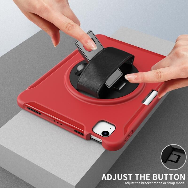 Θήκη προστασίας για iPad Air 2022 / 2020 10.9", περιστρεφόμενη 360 μοιρών, από PC + TPU με βάση στήριξης, λουρί χειρός και θήκη για στυλό (Μαύρο)