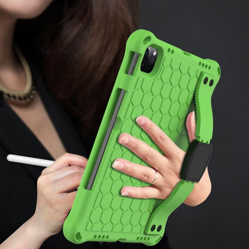 Για iPad Air 2022 / 2020 10.9 Θήκη Προστασίας Επίπεδη με Αντικραδασμική Προστασία Τεσσάρων Γωνιών από Υλικό EVA + PC με Σχέδιο Κηρήθρας και Λουρί (Μαύρο+Μαύρο)