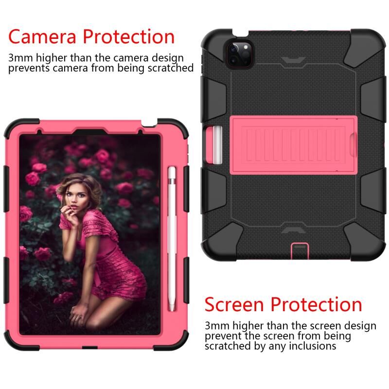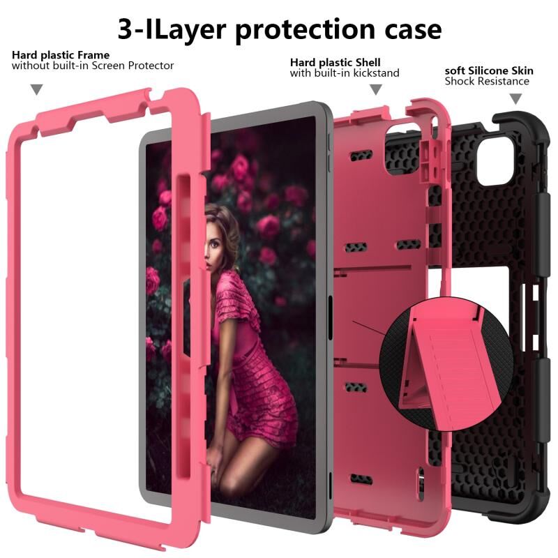 Θήκη προστασίας σιλικόνης δύο χρωμάτων αντικραδασμική για iPad Air 2022 / 2020 10.9 με βάση στήριξης (Μέντα πράσινο + Ροζ κόκκινο)