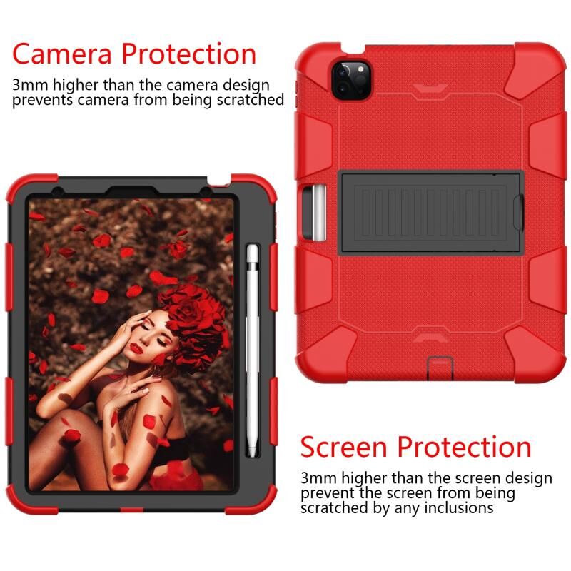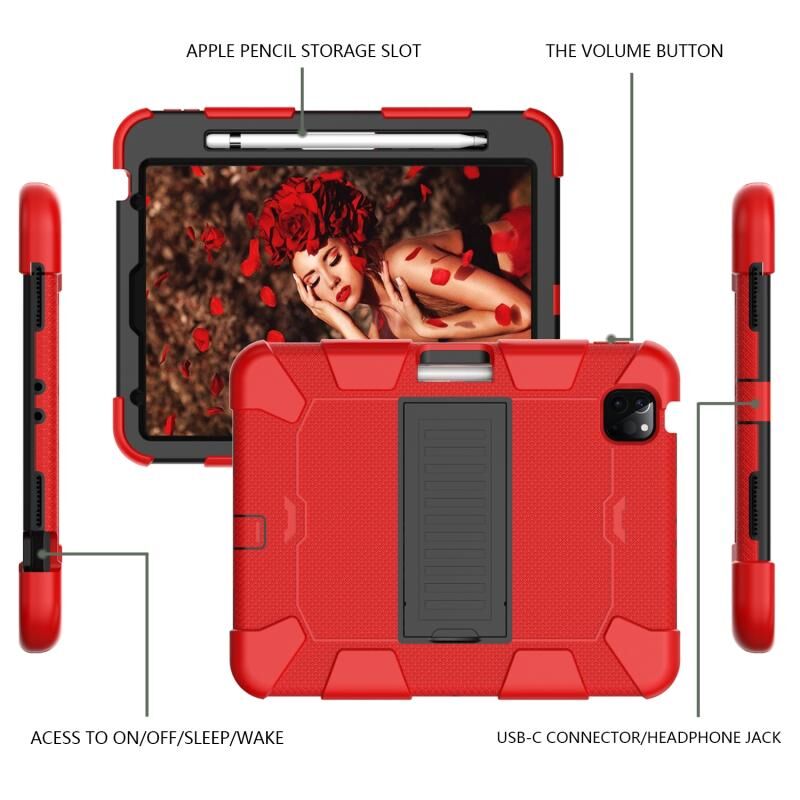 Θήκη προστασίας σιλικόνης δύο χρωμάτων αντικραδασμική για iPad Air 2022 / 2020 10.9 με βάση στήριξης (Μέντα πράσινο + Ροζ κόκκινο)