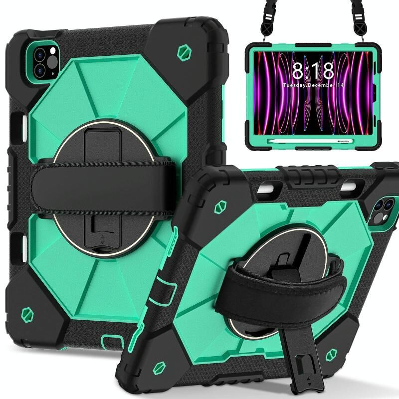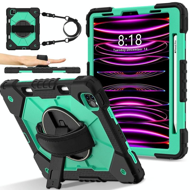 For iPad Air 5 / 4 / Pro 11 Contrast Color Robot Silicone Hybrid PC Tablet Case(Black Mint Green)