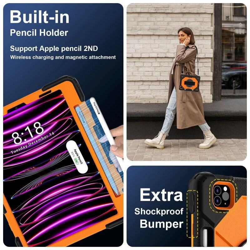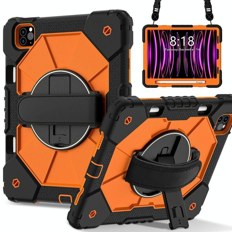 For iPad Air 5 / 4 / Pro 11 Contrast Color Robot Silicone Hybrid PC Tablet Case(Black Orange)