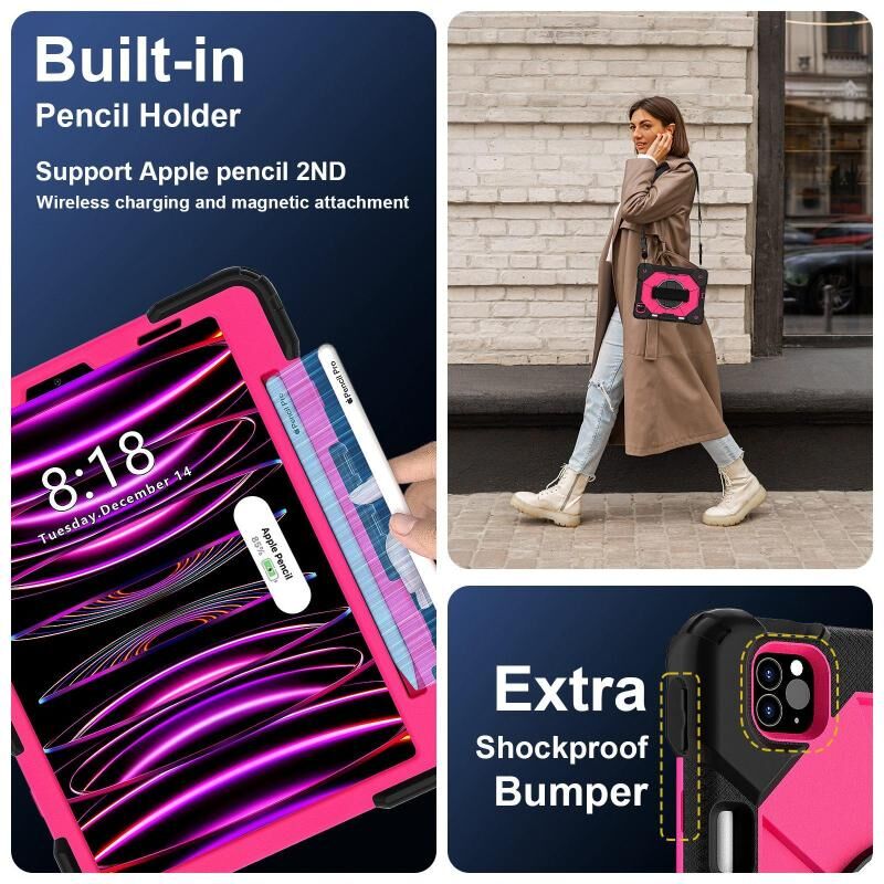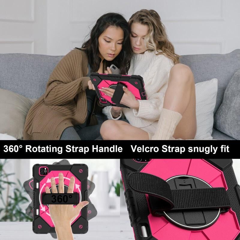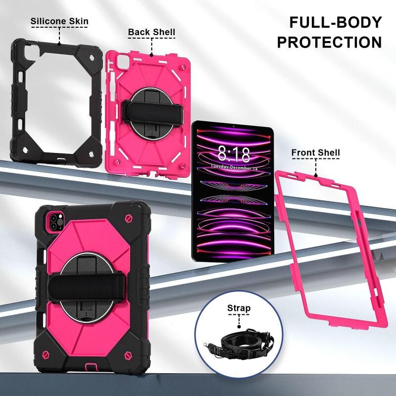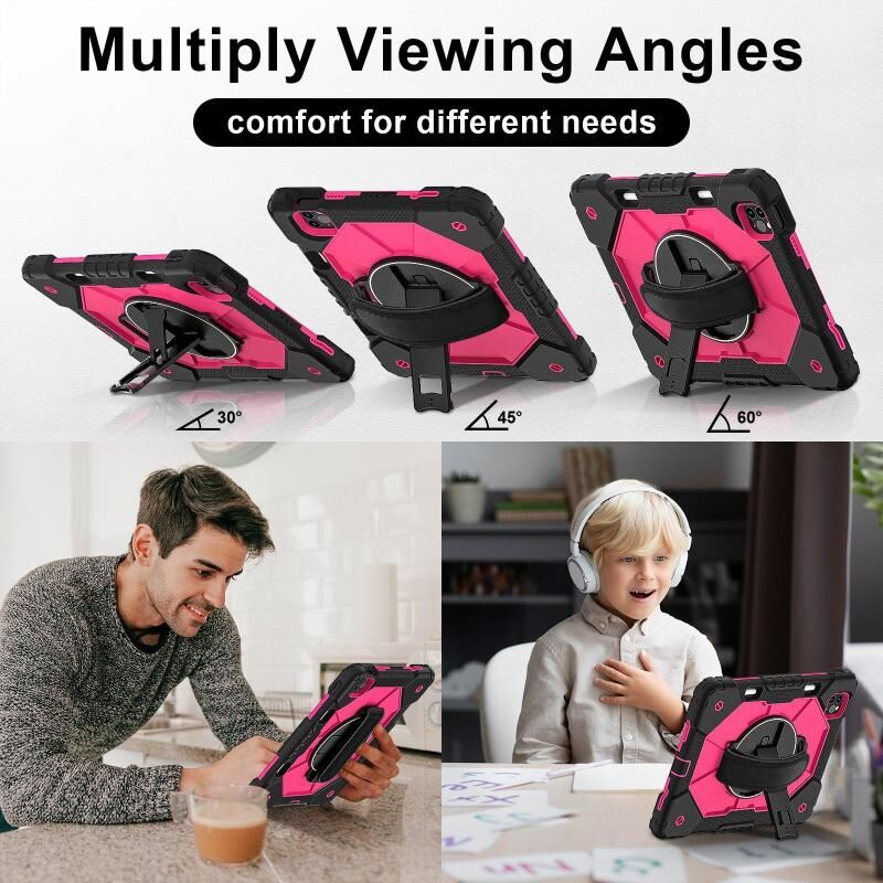 For iPad Air 5 / 4 / Pro 11 Contrast Color Robot Silicone Hybrid PC Tablet Case(Black Rose Red)