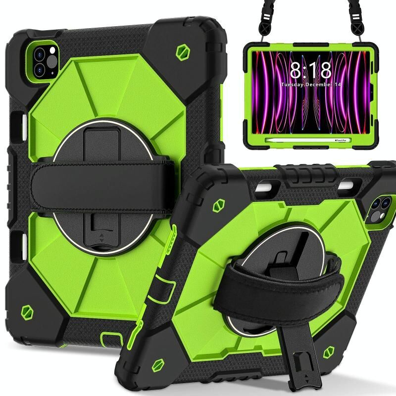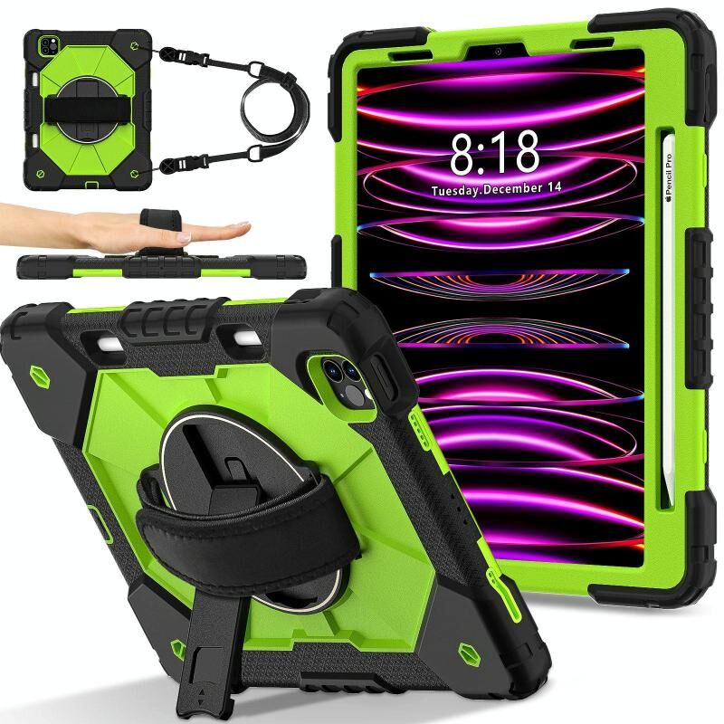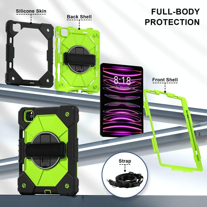 For iPad Air 5 / 4 / Pro 11 Contrast Color Robot Silicone Hybrid PC Tablet Case(Black Yellow Green)