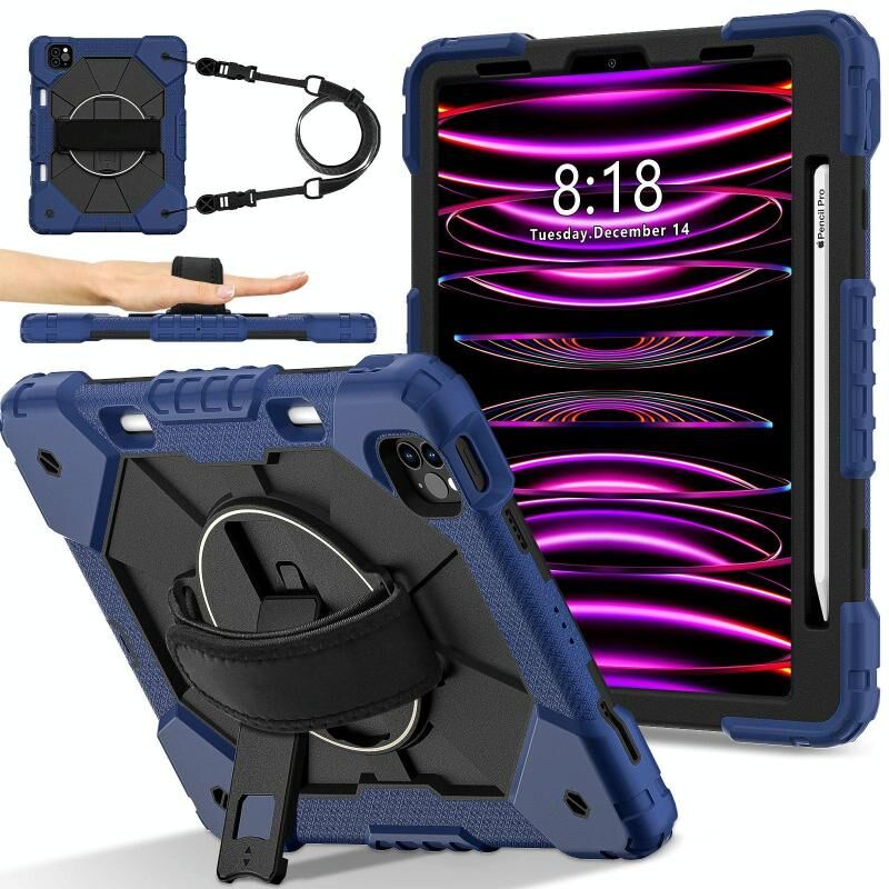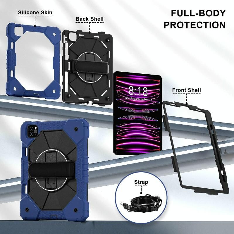 For iPad Air 5 / 4 / Pro 11 Contrast Color Robot Silicone Hybrid PC Tablet Case(Navy Black)