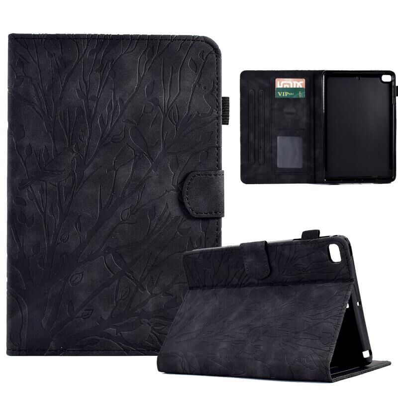 For iPad Air / Air 2 / 9.7 2017 2018 Fortune Tree Pressure Flower PU Tablet Case with Wake-up / Sleep Function(Black)