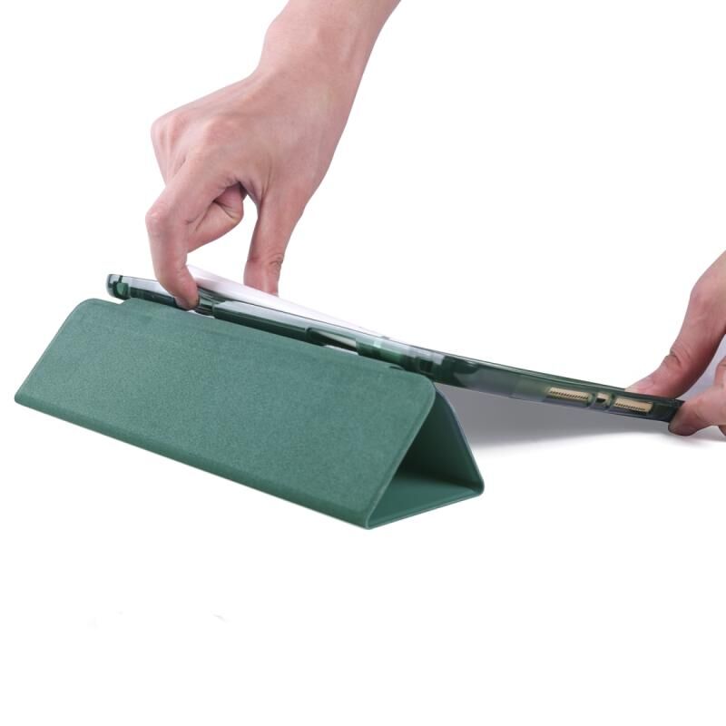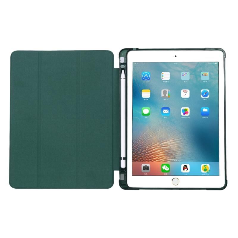 Για iPad Air / Air 2 / 9.7 (2017) & (2018) Θήκη τριπλής πτύσης οριζόντια από δερματίνη PU + αντικραδασμική θήκη TPU με βάση & υποδοχή για στυλό (Pine Green)