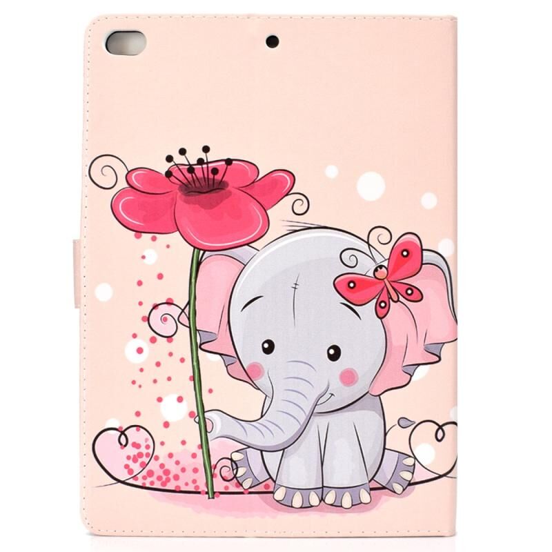 Θήκη για iPad Air / iPad Air 2 2016 / iPad Pro9.7 / iPad9.7 / 2017 / 2018 με έγχρωμο σχέδιο, οριζόντια αναδιπλούμενη από δερματίνη PU με βάση στήριξης & θήκη για κάρτες & λειτουργία αυτόματης αφύπνισης / ύπνου (Λουλούδια Ελέφαντα)