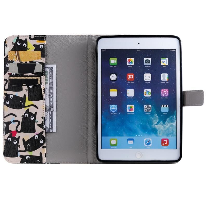 Θήκη δερμάτινη με οριζόντια αναδίπλωση 3D με σχέδια και χρώματα για iPad Mini 2019 & 4 & 3 & 2 & 1, με βάση στήριξης, θήκες για κάρτες, πορτοφόλι και λειτουργία αυτόματης αφύπνισης/ύπνου (Γάτα)