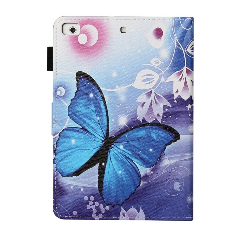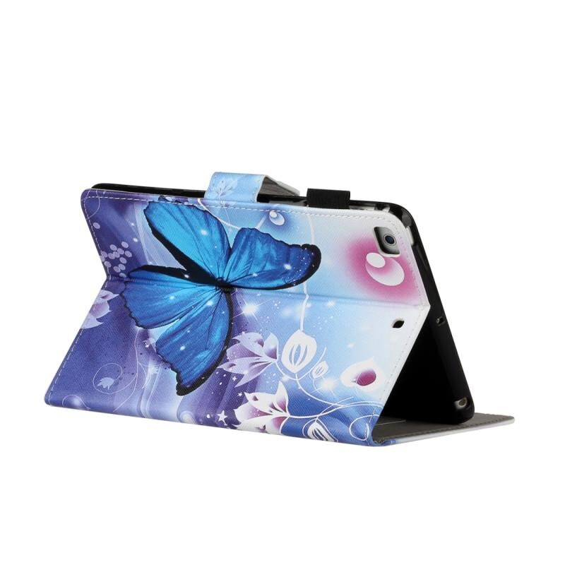 Θήκη για iPad Mini 2019 & 4 & 3 & 2 & 1 με έγχρωμο σχέδιο, οριζόντια αναδίπλωση από δερματίνη PU με βάση στήριξης & θήκη για κάρτες & λειτουργία αφύπνισης/ύπνου (Μπλε Πεταλούδα)