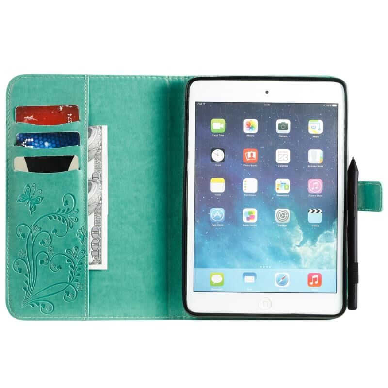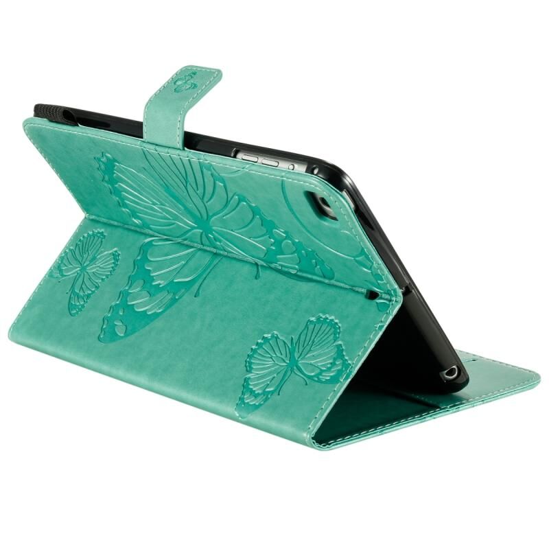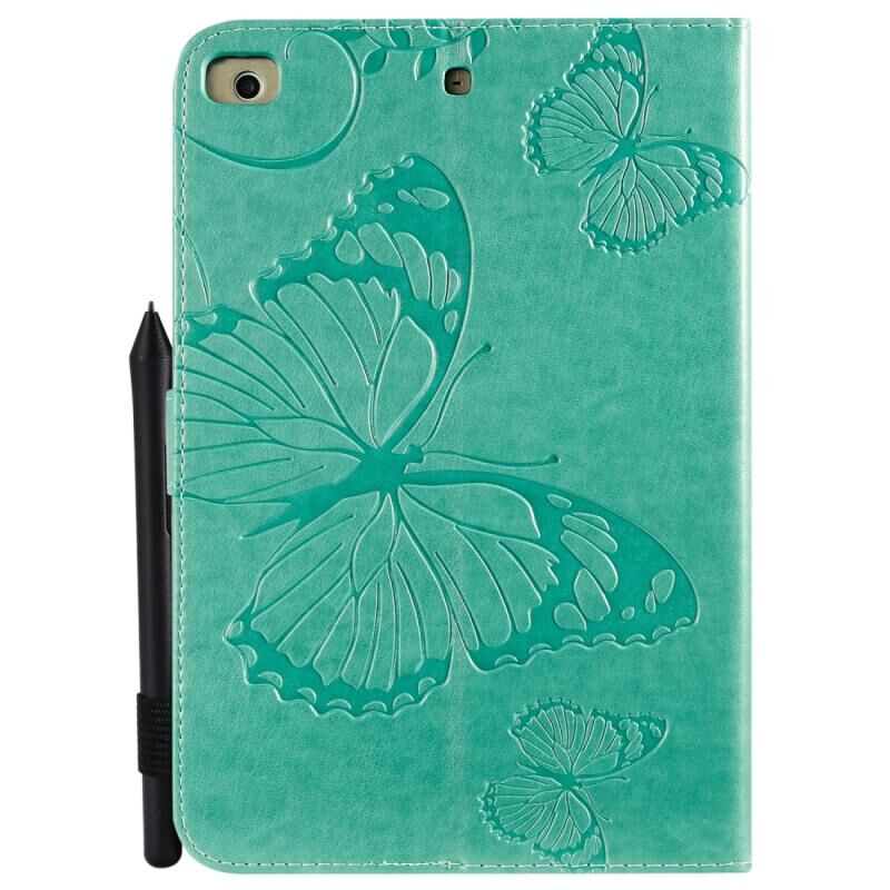 Θήκη για iPad Mini 2019 & 4 & 3 & 2 & 1 με εκτυπωμένο σχέδιο πεταλούδας, οριζόντια αναδιπλούμενη από δερματίνη PU με βάση στήριξης & θήκες για κάρτες & πορτοφόλι & θήκη για στυλό (Πράσινο)