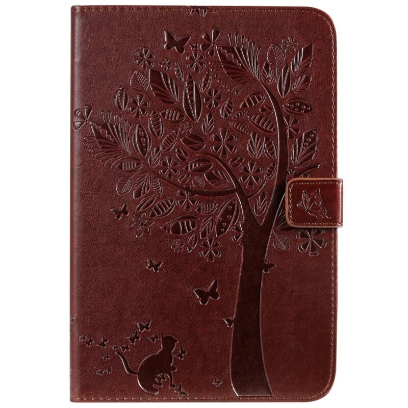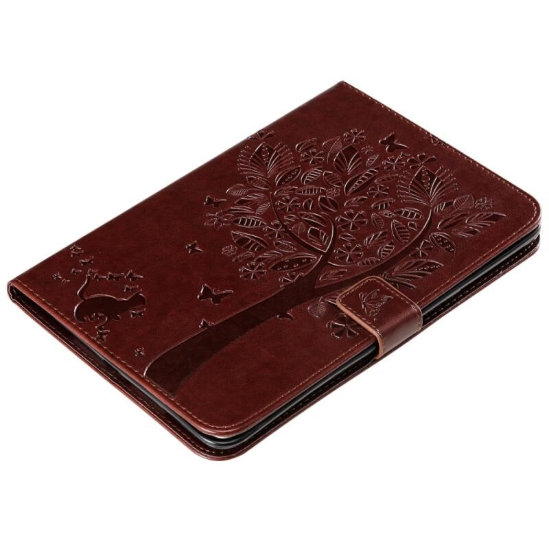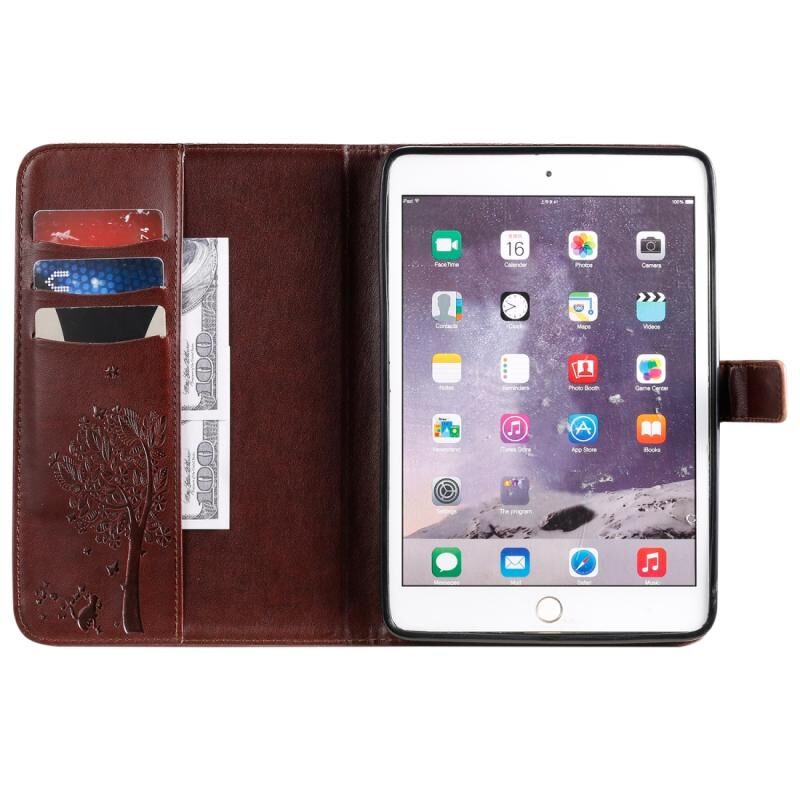 Θήκη δέρματος οριζόντιας αναδίπλωσης με σχέδιο γάτας και δέντρου με εκτύπωση για iPad Mini 2019 & 4 & 3 & 2 & 1, με βάση στήριξης & υποδοχές καρτών & πορτοφόλι (Πράσινο)