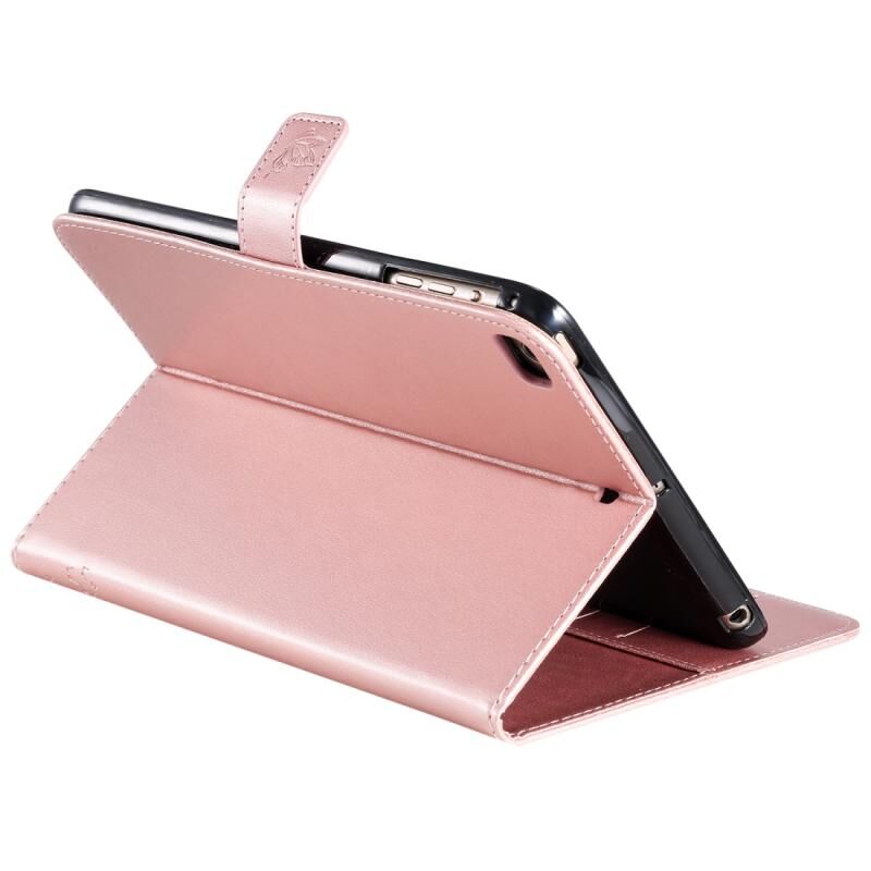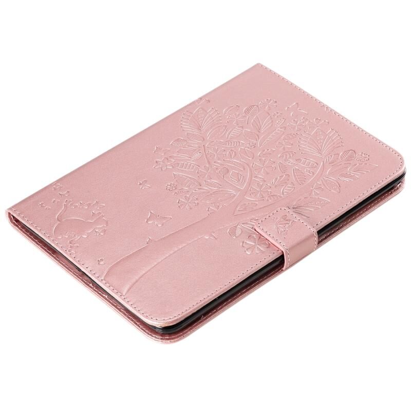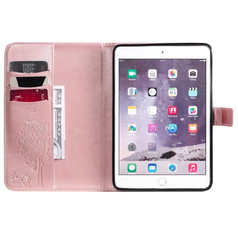 Θήκη δέρματος οριζόντιας αναδίπλωσης με σχέδιο γάτας και δέντρου με εκτύπωση για iPad Mini 2019 & 4 & 3 & 2 & 1, με βάση στήριξης & υποδοχές καρτών & πορτοφόλι (Πράσινο)