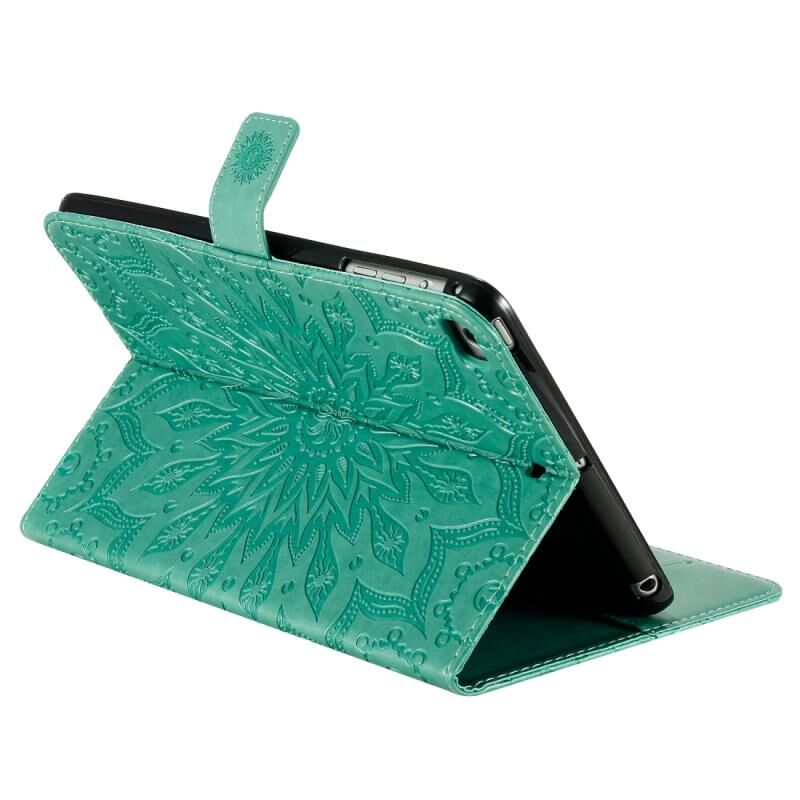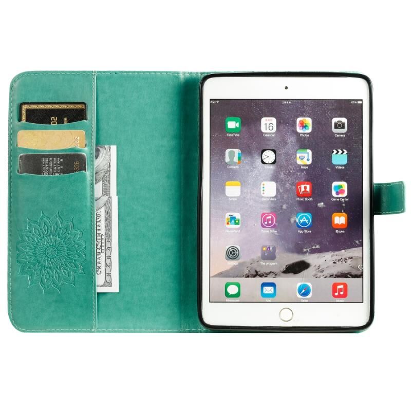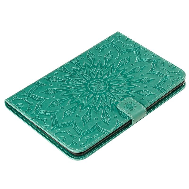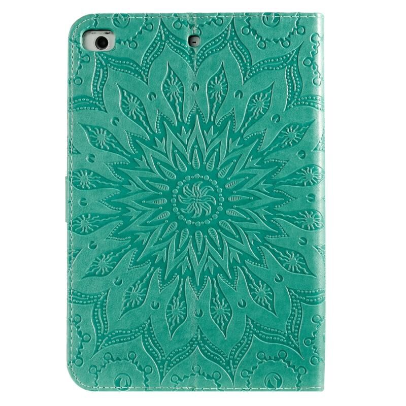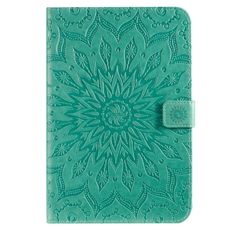 Θήκη δέρματος οριζόντιας αναδίπλωσης με σχέδιο ηλίανθου με εκτύπωση για iPad Mini 2019 & 4 & 3 & 2 & 1, με βάση στήριξης & υποδοχές καρτών & πορτοφόλι (Πράσινο)