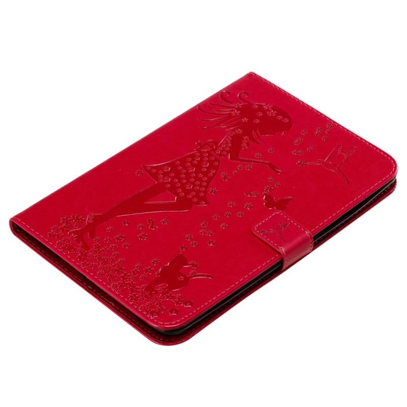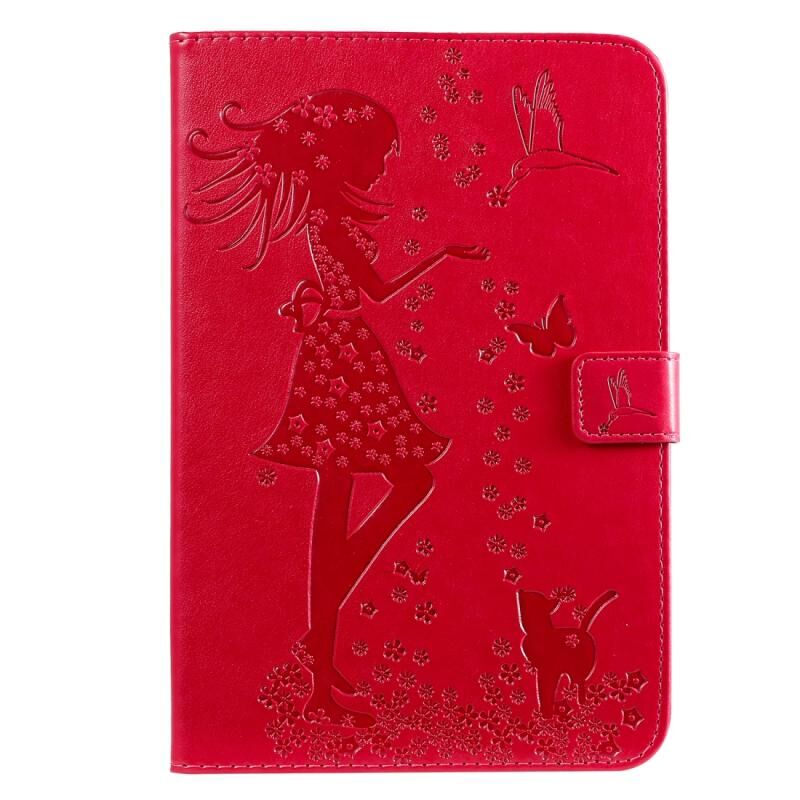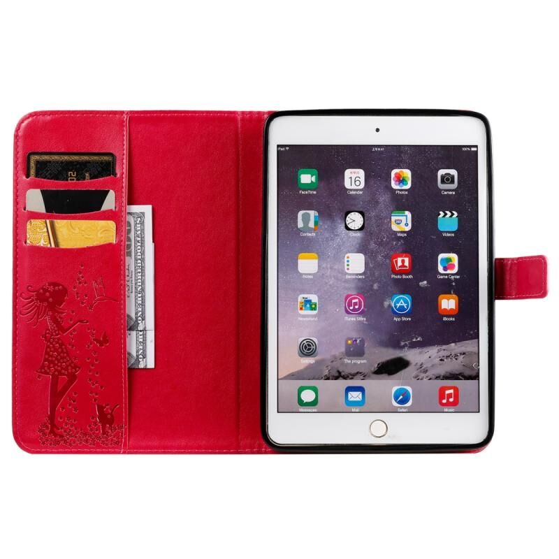 Θήκη δέρματος οριζόντιας αναδίπλωσης με σχέδιο γυναίκας και γάτας με εκτύπωση για iPad Mini 2019 & 4 & 3 & 2 & 1, με βάση στήριξης & υποδοχές καρτών & πορτοφόλι (Χρυσό ροζ)