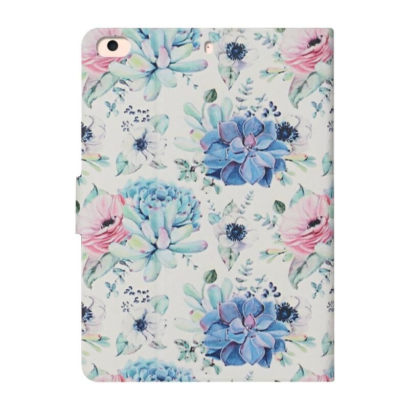 For iPad Mini 2019 Flower Pattern Horizontal Flip Leather Case with Card Slots & Holder(Blue Flower On White)