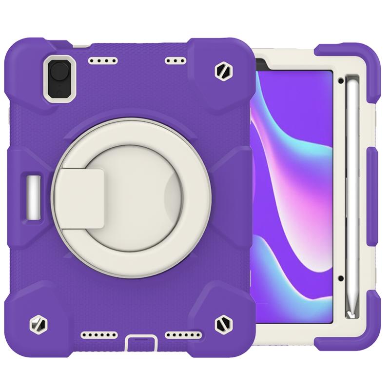 For iPad mini 2021 Silicone + PC Full Body Protection Tablet Case With Holder & Strap(Dark Purple)